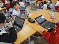 図画工作科の作品が5年オープンフロアに並んでいます。