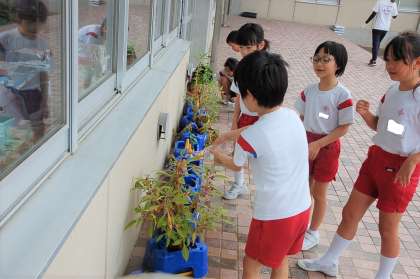 ホウセンカ(3年生)9月11日 公開日 2024/09/11 更新日 2024/09/11 3年生 毛虫がいます! 「5匹いる!」と言う子供もいます。 子供たちはガの幼虫だと教えてくれました。 この後、さなぎになるそうです。