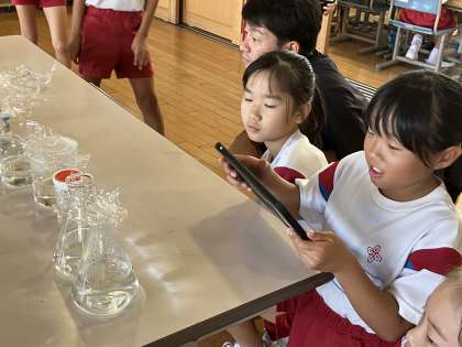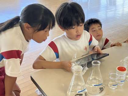 雨が降ってたまった水の行方 ー理科ー (4年) 9月11日 公開日 2024/09/12 更新日 2024/09/12 4年生 雨が降ってたまった水はどこへいくのでしょう?他のグループの実験の様子や前の状態、条件による違いを比べて実験のまとめを見いだします。