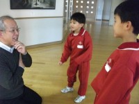 地震発生の放送を聞いて、素早く机の下にもぐり、身の安全を守っていました。