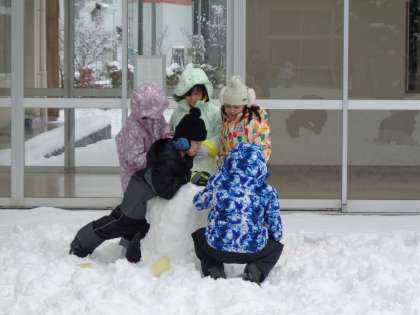 先日から、たくさんの雪が降ったので、1年生は生活科の時間に雪遊びをしています。