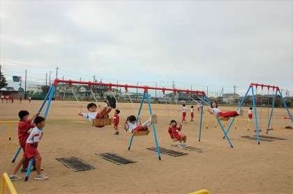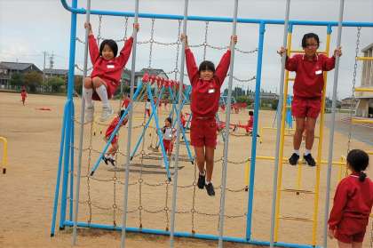 朝から元気いっぱいの東部っ子! 1年生もグラウンドまで遊びに来ています!