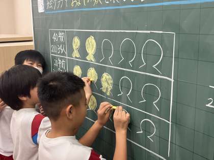 およその数の表し方 ー算数科ー (4年) 10月22日 公開日 2024/10/22 更新日 2024/10/22 4年生 正確な数をおよその数に表す方法を考えています。40年前の人口、21034人を20000人としています。32756人と38412人はそれぞれ何人と表せばよいでしょう?