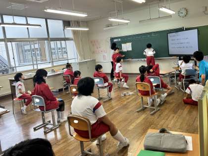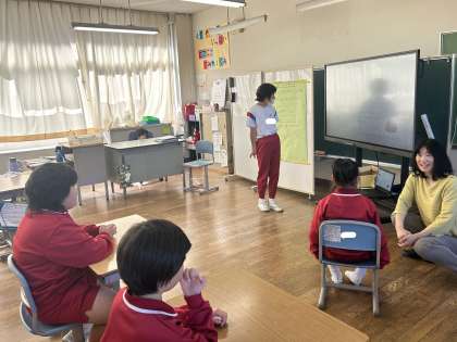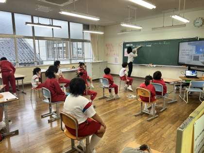 来週の校外学習に向けて、説明会を開きました。5・6年生が目当てや約束、行程について、事前に作ったパワーポイントを使いながら他学年に説明しました。