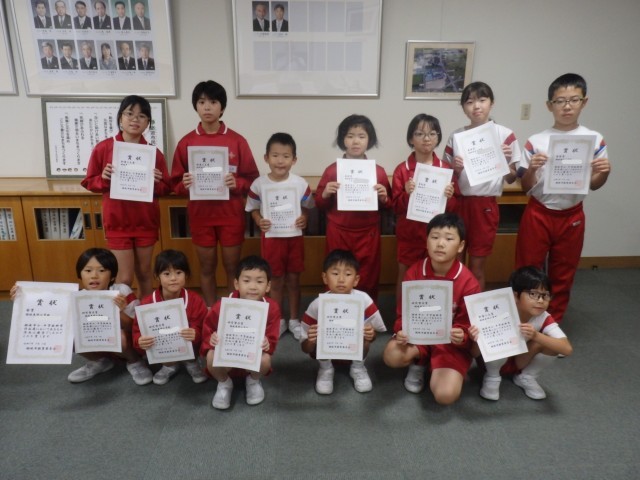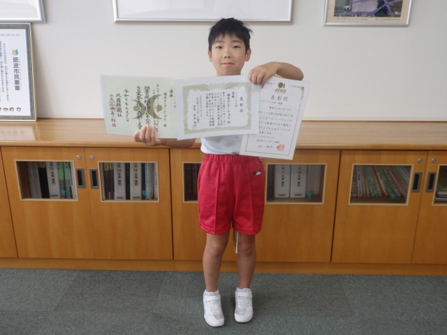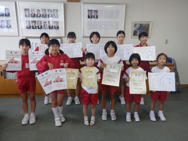 昼の時間に、校長室で受賞報告・結果報告がありました。