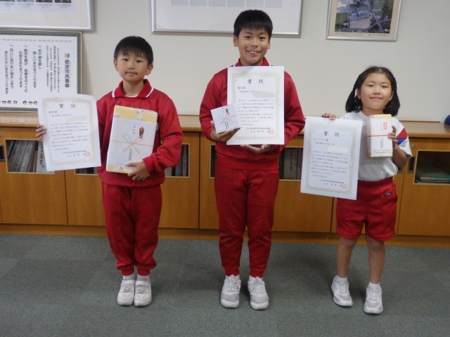 全校 昼の時間に、校長室で受賞報告がありました。 ・第19回小中学生写真コンテスト 優秀賞 3年 優良賞 6年 ミュージアム賞 1年 おめでとうございます。