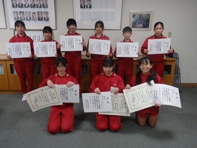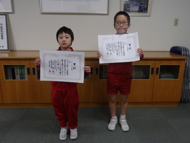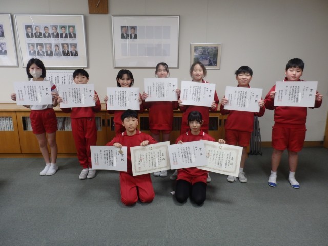 昼の時間に、校長室で受賞報告がありました。