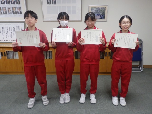 昼の時間に、校長室で受賞報告がありました。
