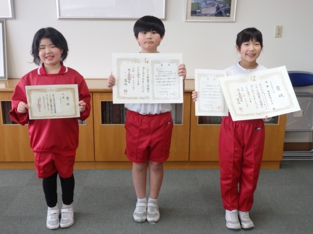 昼の時間に、校長室で受賞報告がありました。