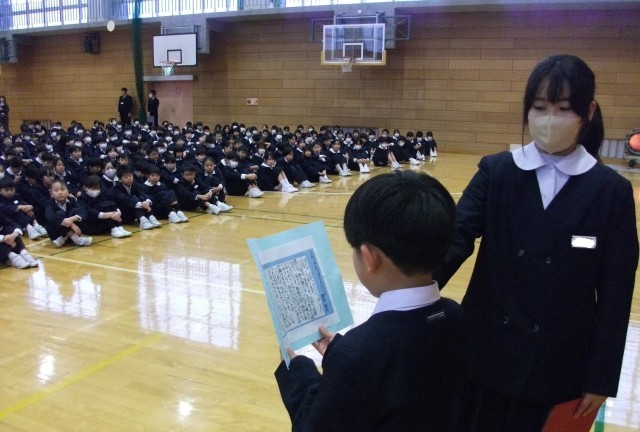 第2学期の終業式を行いました。冬休みには、家族とゆっくり過ごす時間があると思います。家族に感謝の気持ちを伝えましょう。新しい年に向けて、心と体の準備を整えましょう。