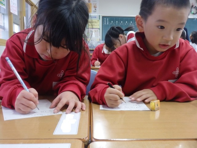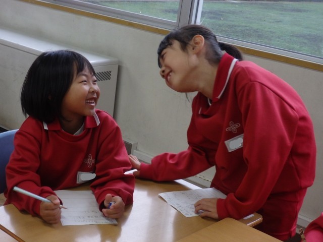 1年生 自分のやり方でやってみた後は・・・。 友達との「こうりゅうタイム」