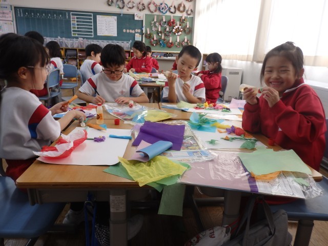 おはながみをつかって ー図画工作科ー (1年) 11月11日