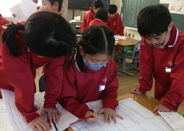 今日は、友達と相談して、問題を考えています。形やはたらきをもとにヒントを考えられたかな?