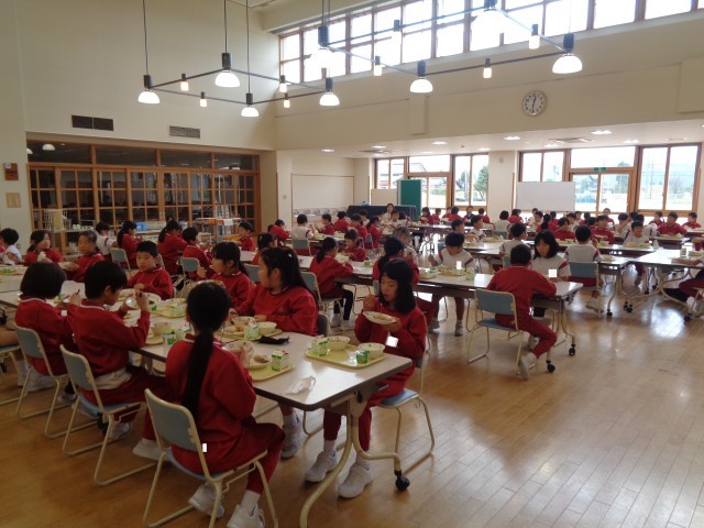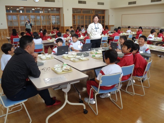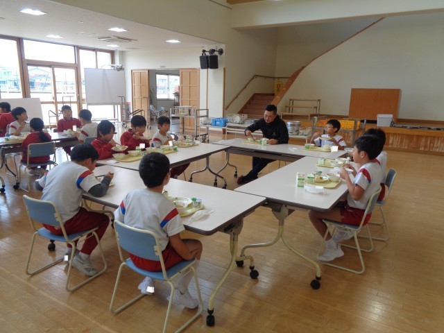 校区のお米の生産者さんをお招きして、一緒に給食を食べました。
