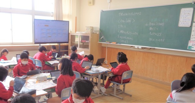 最後に、タブレット端末を使って学習の振り返りをしました。
