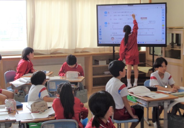 算数科で大きい数の仕組みについて勉強しています。