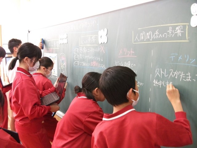 6年生では、冬休み前に、インターネットを使う時のマナーや家でのゲームのルールについて話し合いました。