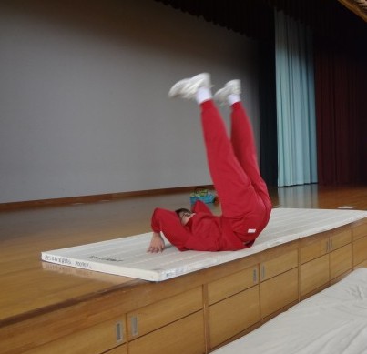 「膝が伸びていてあおりができていたから、次は手でマットを押すのもできるといいね」