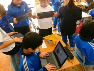 5時間目に授業の様子を見て回ると、多くの学年でタブレット型端末を使って学習していました。2年生の国語科の学習では、キーボード入力に挑戦しながら、自分で物語を作成していました。3年生の国語科の学習では、俳句を作成するためのアイディアを思考ツール<アイディアマップ>などを用いながら整理し、五・七・五の言葉選びに活かしていました。お互いに作成した俳句を紹介し合う場面でもタブレット型端末を使っていました。4年生の国語科の学習では、クリスマスカードまたは年賀状を作成するための図案をインターネットで検索し、それをもとに自分らしいカードを作っていました。5年生の社会科の学習では、情報を活用するよさについて自分の考えをまとめていました。自分の考えの根拠となる資料をカメラで撮影し、必要な部分をトリミングして貼り付けたり、グラフを用いて分かりやすくしたりするなど、工夫しながら発表用のレポートにまとめていました。これからも学年の発達段階に応じたタブレット型端末の使い方を工夫し、子供たちの学習が充実するように取り組んでまいります。