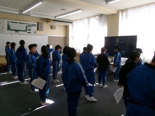 総合的な学習の時間に、『卒業お祝いプロジェクト』を進めています。今日は、卒業おめでとう集会で歌う合唱曲の練習をしました。自分たちで話し合って決めた曲を6年生にありがとうやがんばれ等の気持ちが伝わるように歌うために、出し物プロジェクトの5人が並び方や歌い方等をみんなに伝えながら練習を進めました。卒業おめでとう集会で素敵な合唱ができるよう、練習を積み重ねていきます。