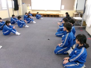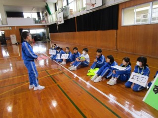 卒業式に向けて、4年生で発足した『ちびっこ応援団』の練習が続いています。今日は、昨年『ちびっこ応援団』をした5年生に、練習の様子を見てもらいました。5年生から「大きな声が聞こえていていいね」「太鼓が力強くてかっこいいよ」などの温かい言葉や、「言葉を短く切るといいよ」「腰をもっと下げるといいよ」などのアドバイスをもらいました。本番まであと3週間、さらに磨きをかけて6年生に応援の気持ちを伝えられるように練習していきます。