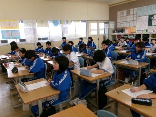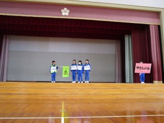 『なわとび集会』を行いました。子供たちは、集会の目当てである「団のみんなと協力して、心を一つにし、新記録を目指そう」に向けて、これまでの練習で積み重ねてきた成果を思いっきり発揮していました。がんばって跳んでいる仲間の姿に刺激を受け、応援する声がだんだん大きくなり、活気のある集会となりました。残り少なくなった3学期を、今日の集会のように仲間と協力し、力を出し切って締めくくってほしいです。