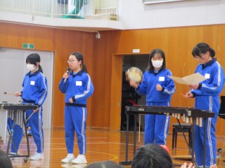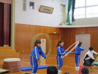 3学期の「にじいろステージ(特技発表会)」を行いました。今回は、「なわとび」「跳び箱」「鉄棒」「フラフープ」「ピアノ」「合奏・歌」の発表がありました。どの子も生き生きと発表し、会場が温かい拍手に包まれました。互いのよさやがんばりを認め合えたすてきな時間となりました。