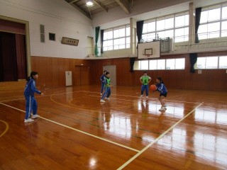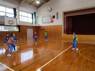 5年生は、体育で『シートバスケットボール』に取り組んでいます。シートの中からシュートすれば、相手に邪魔されずにシュートできるというものです。今回のルールでは、ドリブルはできません。味方同士でパスをつないで、シュートを目指します。今日は、「どこにパスを出せばいいだろうか」「どこに動けばパスをもらいやすいだろうか」ということを考えながらやってみました。学習を重ねるにつれ、声掛けが増えたり、パスがスムーズにつながったりしてきました。次の試合も楽しみです。