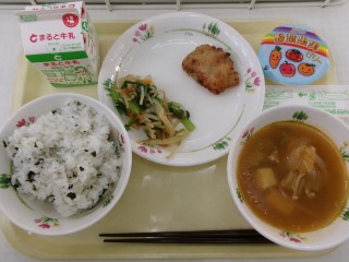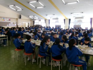 先週は、学校給食週間でした。子供たちが元気に過ごすことができるように「パワーアップ!スタミナアップ!体力をつける栄養素」や「免疫力アップ!体を守る栄養素」など、毎日テーマが異なる特別献立が出ました。最終日は、「肌つやつや!おなかすっきり!元気を支える栄養素」をテーマにした献立でした。子供たちは、友達と会話しながらわかめご飯やグリルチキン等を楽しそうに食べていました。これからも食事のマナーを身に付けながら給食の時間を楽しんでほしいです。