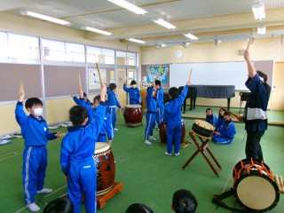 3年生の子供たちは総合的な学習の時間に、砺波南部小学校区に住んでおられる「〇〇名人」について学習しています。今日は、『いさみ太鼓』を継承していらっしゃる高木さんを講師にお招きし、お話ししていただきました。子供たちは、高木さんの話を聞いて、「上手に演奏できるようになるには、どれくらい時間がかかりますか?」「<いさみ太鼓>という名前の由来は、何ですか?」など、より詳しく学ぼうと質問したり、高木さんから実際に太鼓のたたき方を教わったりしました。子供たちは、『いさみ太鼓』の魅力や高木さんの『いさみ太鼓』に関わる姿のすばらしさを感じることができました。