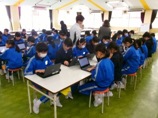 今日は、来年度4月から利用を予定している生成AIの利用の仕方や気を付けることについて、ICT支援員の方から教わりました。最初に、「お楽しみ会のイベントを3つ教えて」と生成AIに質問したところ、出てきた回答がバラバラであったこと。「明日の砺波市の給食の献立を教えて」と生成AIに質問したところ、正しい回答が出てこないことを知りました。子供たちは、生成AIの回答が必ずしも正しいとは限らず、最後は自分で確かめることが重要であることを学びました。また、個人情報を入力する危険性についても教わりました。今後、子供たちは、生成AIを使いながら生活する時代を生きていくことになると思います。正しく使うことができるように取り組んでまいります。