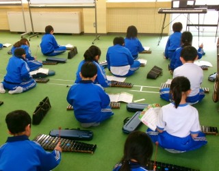 2年生の音楽の学習では、『アイアイ』の器楽合奏に取り組んでいます。今回利用する楽器は、「鉄琴」「木琴」「タンバリン」「太鼓」「鍵盤ハーモニカ」の5種類です。子供たちは、演奏を終えるたびに担当する楽器を順番に代わり、演奏していきます。5種類すべての楽器を演奏することはとても難しいことなのですが、子供たちは、リズムに合わせて演奏していました。最後までリズムよく演奏できた時の子供たちの笑顔は、とても輝いていました。