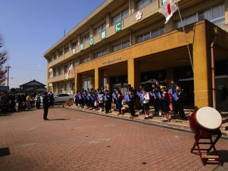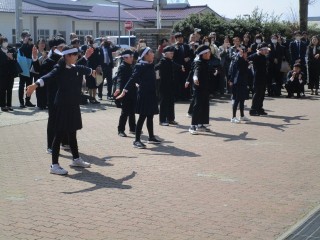 砺波南部小学校を巣立っていく卒業生に対して、在校生が『門出の式』を行いました。5年生が司会進行や挨拶を担当し、4年生が<ちびっこ応援団>としてエールを送りました。卒業生は、在校生がつくる花道を笑顔で歩きながら、下級生との最後の交流を楽しんでいました。