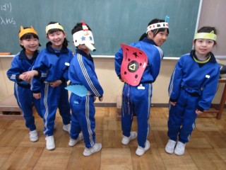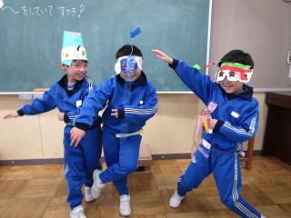 1年生は、図工「つくってへんしん」の学習で、変身アイテムを作りました。