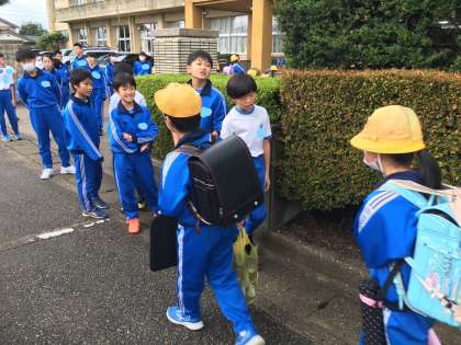 今、学校では学年挨拶運動が行われています。ボランティア委員会が決めた挨拶強調週間中で各学級が決めた挨拶運動に取り組んでいます。4年生では4つの運動を学級で話し合って決めて、運動に取り組んでいます。学級では、1.挨拶リレー(朝、教室に入ってくる人に挨拶をして、挨拶を順番につないでいく」2.挨拶トリップ(他の学年を訪問して挨拶してくる)3.挨拶カード(曜日ごとのカードを自分で作り、挨拶ができたら〇をつけていく)4.挨拶ゲート(北玄関と南玄関に出て、挨拶する)の中のいくつかに取り組むことにしました。1日3つも取り組む子供たちが多数現れて、元気に運動を続けています。