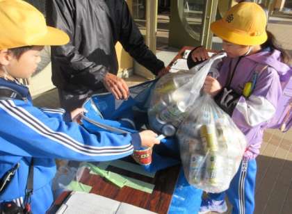 ご協力いただいた保護者の皆様、そして、家から学校までアルミ缶を運んだ児童のみなさん、ありがとうございました。