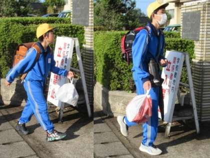 今日は、アルミ缶回収日。登校時間帯には、アルミ缶の入った袋を手に登校する子供たちの姿がありました。今日も、あっという間に回収袋がいっぱいになりました。
