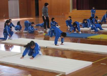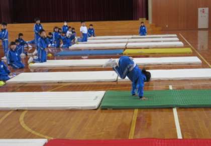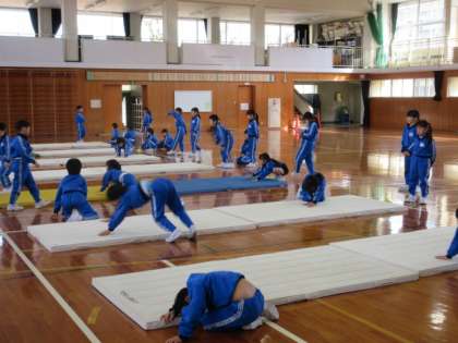 2年生は、体育科でマット遊びをしています。友達のよいところを見つけ、そのポイントを意識して何度も挑戦する姿がみられました。