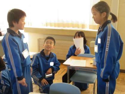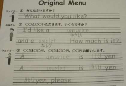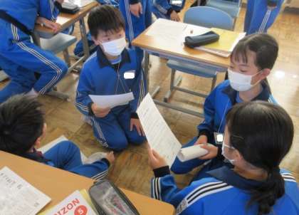 5年生は、外国語科で「ていねいに注文したり値段を尋ねたりする言い方」を学習しています。今日は、グループの中でお店の人とお客さんに分かれ、英語での言い方を練習しました。繰り返し表現することで自信をもち、大きな声でやりとりをする子供たちの姿がみられました。