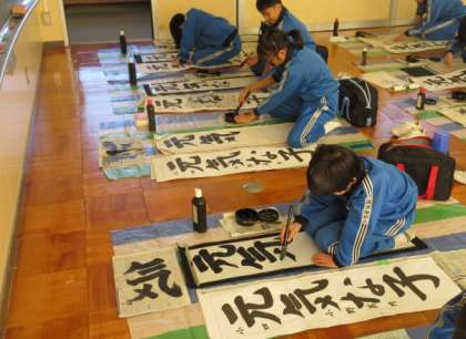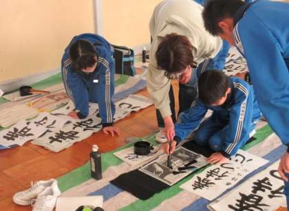 書道講師の橋本先生による書初指導がありました。今日は、6年生と4年生が苦手な文字の書き方を先生から直接教わり、教わったポイントを意識して練習しました。6年生は「春待つ心」、4年生は「元気な子」と書きます。新年の書初大会に向けて、これからも練習をがんばります。