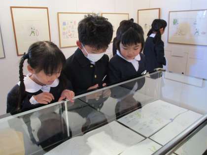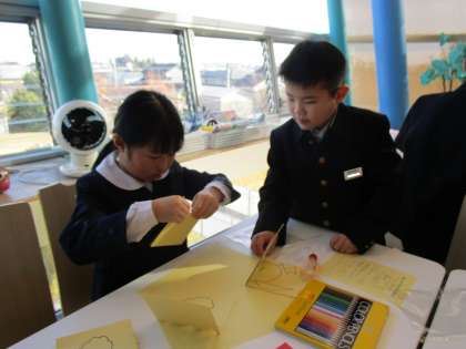 2年生は、大島絵本館へ校外学習に行ってきました。ワークショップでは、動物が飛び出す絵本作りに取り組みました。思い思いにストーリーを考え、世界に一つの絵本が完成しました。その後、絵本の原画を鑑賞したり、図書コーナーで好きな絵本を思いきり楽しんだりしました。絵本のよさを知り、絵本がもっと大好きになった一日になりました。