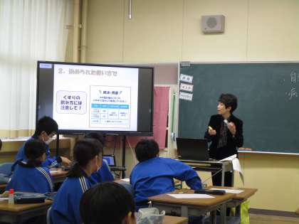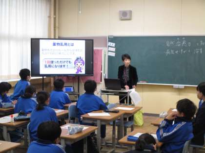学校薬剤師の舘浩子先生をお招きして、6年生を対象に薬物乱用防止教室を行いました。