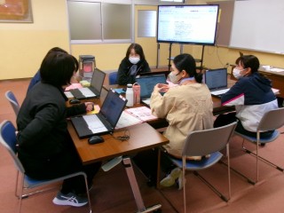 今後、子供たちに生成AIの使い方を指導することになった場合に、教員自らが生成AIの使い方を知っておく必要があると考え、児童が下校した後に校内研修として、生成AI(Gemini)を利用して「総合的な学習の時間」の教材開発に挑戦しました。まず、研修の進め方やGeminiの利用の仕方を全体で確認した後、中学年グループと高学年グループに分かれて、Geminiを使って教材開発を行いました。互いに生成した資料を紹介し合いながら、「総合的な学習の時間」の学習活動が充実するように意見を出し合うことができました。また、生成AIを利用するよさを体験することもできました。これからも研修を重ね、児童に指導するための準備を整えていきます。
