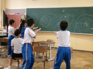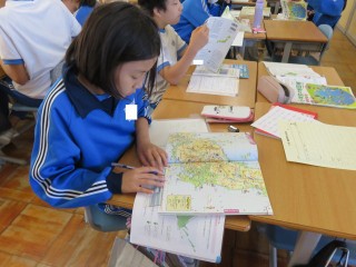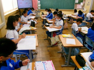 算数「およその面積・体積」の学習のまとめです。身の回りの物のおよその容積を求めたり、地図を用い、都道府県や島、湖、海外の国土等のおよその面積を求めたりしました。およその容積や面積が数字に表れることで、「人によってランドセルの大きさが違うんだね!」「○○さんのランドセルが大きいよ!」「実際の面積とズレが大きくなったよ。どうしてかな。」など、一喜一憂する姿も見られました。学習したことを実生活にも生かせることに気付くことができた時間でした。