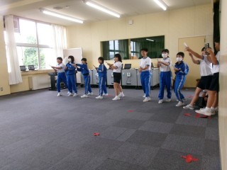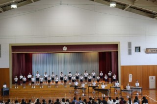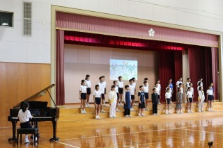 4年生:周りの友達の声や音をしっかりと聞き、心を一つにして息の合った表現することができました。大きな声で歌う姿に練習の成果が表れていました。