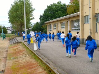 11月5日(水)に予定している『持久走大会』の試走を行いました。今年度は、スタート地点をグラウンド内に設けました。理由は、スタート直後、子供たちが混み合って転倒する危険性を防ぐためと、万が一スタート直後に転倒した場合のけがの大きさを軽減するためです。子供たちは、持久走大会の本番に向けて、自分のペースを確かめながら走り切ることができました。保護者の皆様には、本番で子供たちが自分の目当てを達成できるように、子供たちの体調管理へのサポートをお願いいたします。また、大会当日、力走する子供たちへの応援をよろしくお願いいたします。