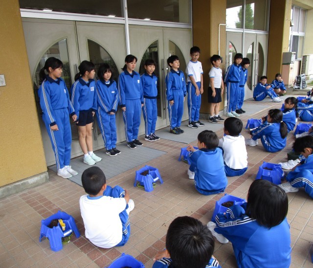 3年生の子供たちは、環境美化委員が育てたゼラニウムの苗を受け継ぐ「命のリレー伝達式」を行いました。この「命のリレー」は、砺波南部小学校の先輩たちが30年以上も続けてきました。今日は、環境美化委員会から苗の育て方について説明を聞いた後、鉢に丁寧に植えました。小さな苗を前に、「花を咲かせたいな」「家に帰ったら水をあげよう」という声が聞かれました。大切に苗を育てて伝統を受け継いでいきたいという思いを高めた子供たちです。