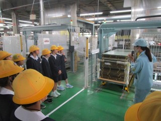 27日(月)に、社会科「わたしたちのくらしと工業生産」の学習で、協立アルミ工場を見学してきました。初めに、会社の歴史や工場で作っている製品について教えていただきました。次に、アルミの板から、住宅玄関用のドアができるまでの作業の工程を見せていただきました。工場で働く方々は、小型のタブレット端末を腕に付け、部品に付けられているバーコードを読み込み、種類や数に間違いがないか確認して仕事をされていました。子供たちは、安全で高品質な品物をお客さんに届けるために、たくさんの工夫が施されていることを知り、感心していました。最後に、「仕事のやりがいは何ですか」「製品を作る時に大切にしていることはなんですか」等と質問する姿が見られ、働くことの意義や働く方々の思いに触れることができました。この見学で学んだことを生かして、これからの学習につなげていきます。