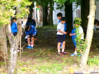日に日に寒くなり、本校の『なんぶの森』の木々も赤色や黄色に色づき始めました。1年生の子供たちは、生活科「あきみつけ」の学習として、木の葉や木の実などを利用して、自分たちでやってみたいことを考えました。子供たちからは、<どんぐりずもう><おちばえ><おちばカード><こすりだし>など、いろいろなアイディアが出てきました。それらを実際に行うために、『なんぶの森」へ行って材料集めを行いました。子供たちは、「どんぐりがあったよ」「大きな葉っぱを見つけたよ」などと、材料が見つかるたびに歓声をあげながら、材料集めに夢中になっていました。この先、集めた材料で、どんな活動を進めていくのか楽しみです。