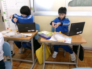 先週から理科「とじこめた空気と水」の学習をしています。筒や注射器を使って実験し、気付いたことや疑問に思ったことを友達と対話したり、タブレットで実験を写真で撮ったり、言葉でまとめたりする様子がたくさん見られます。これからも、友達が気付いたことを聞き「自分もやってみたい!」「じゃあ〇〇だとどうかな?」などと、さらに学びを深めようとする姿を育てていきます。